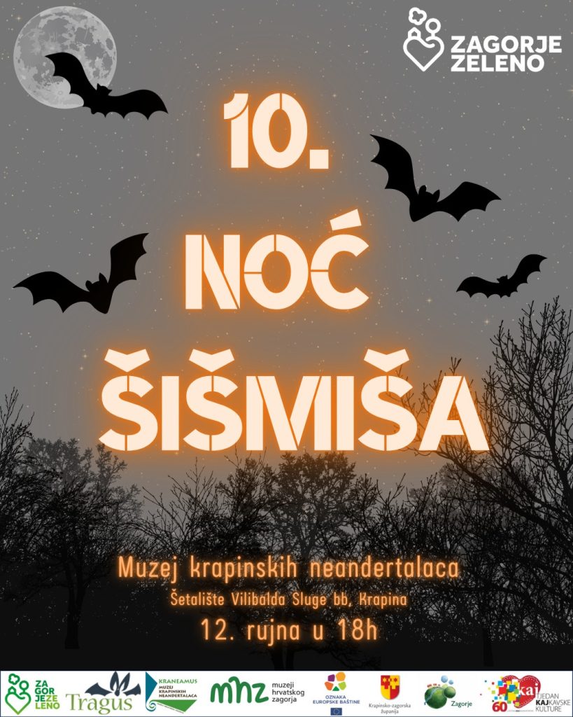 Povodom Međunarodne noći šišmiša pozivamo vas na nezaboravnu večer u Muzeju krapinskih neandertalaca! U programu vas očekuje:Origami radionicaŠišmiš tetovaže (facepainting & bodyart)Stručno predavanje (Udruga Tragus)Storytelling – priče o šišmišima (Srebrenka Peregrin)Kviz znanja i nagradeNoćna šetnja s detektorom šišmiša Dođite i otkrijte zašto su ovi tajanstveni leteći sisavci nezamjenjivi u prirodi. Uz edukaciju, zabavu i interakciju […]
