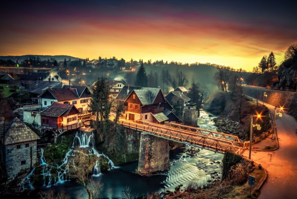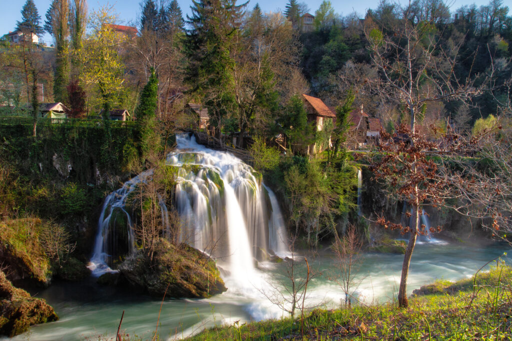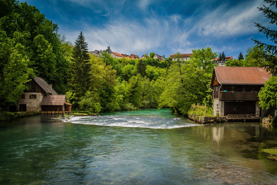 Rastoke, vodeničarski biser slunjskoga kraja, nastale su igrom prirode gdje se zelenomodra rijeka Slunjčica prelijeva preko sedrenih stijena u rijeku Koranu, stvarajući pritom mnoštvo slapova, brzaca, malih jezera i kaskada.