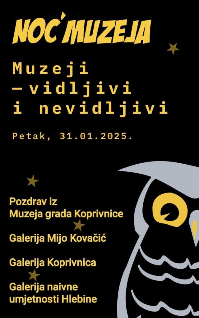 U kontekstu ovogodišnje teme MUZEJI – VIDLJIVI I NEVIDLJIVI, Muzej grada Koprivnice će i ove godine predstaviti dio muzejske prakse, muzejsko-galerijske programe, izložbe i muzejske akcije, suradnju s muzejskim, odgojnim i obrazovnim ustanovama i suradnjama koje promiču važnost interakcije muzeja i zajednice, posebno senzibilizaciju najmlađih osjetljivih skupina kojima muzej svojim radionicama i edukacijom pruža sigurnost i vidljivost u zajednici. I ove godine muzej je pripremio muzejske programe za publiku svih uzrasta, od prijepodnevne Noći muzeja za vrtićki uzrast (prigodno njihovom uzrastu), likovne radionice, izložbe i stručna vodstva.