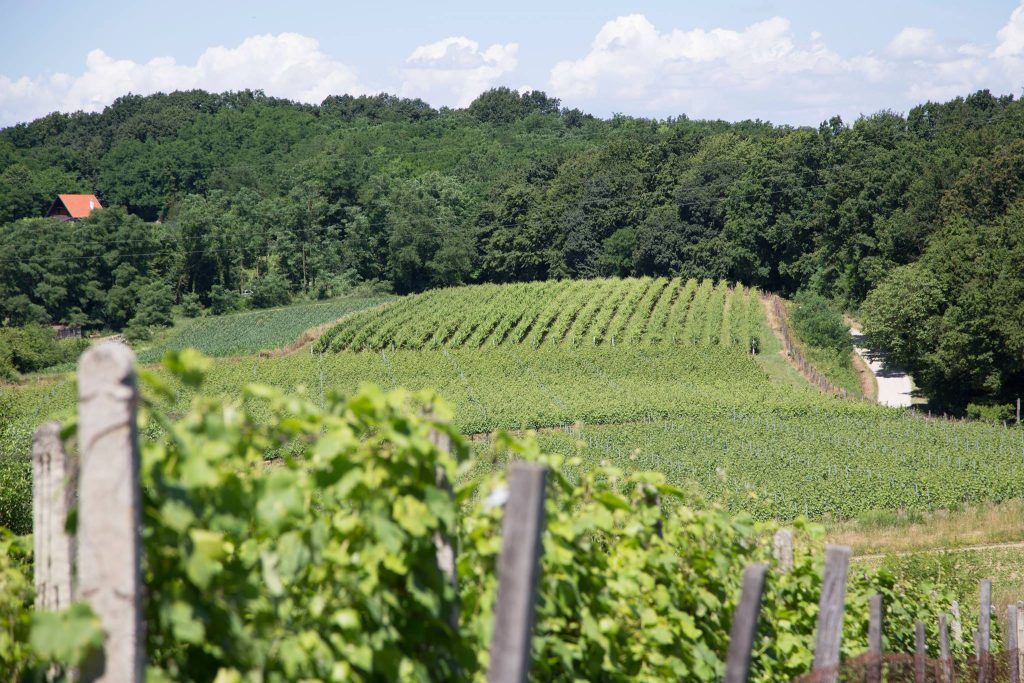 Sa samog ulaza na imanje pruža se prekrasan pogled na vinograd u kojem uzgajamo škrlet, graševinu, chardonnay, žuti muškat, rajnski rizling, merlot, shiraz i cabernet sauvignon.