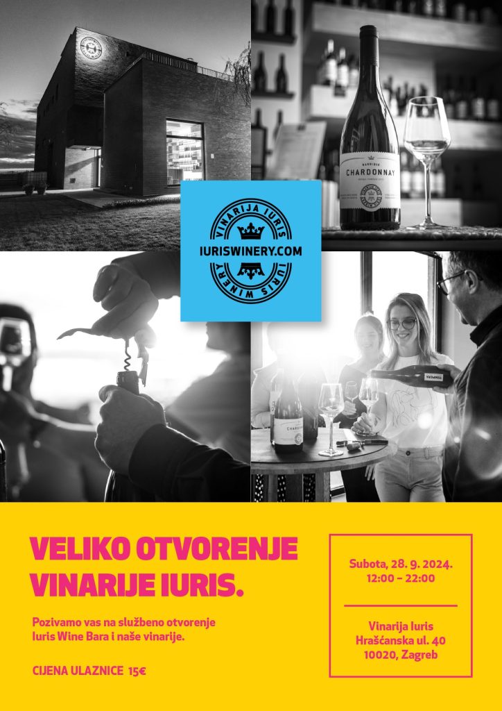 Što vas očekuje? Otvorenje nove vinarije (vinski podrum, punionica, prostrana terasa, Iuris Wine Shop) i kušaonice – Iuris Wine Bar i kušanje izabranih vina popraćenih prigodnim zalogajima.